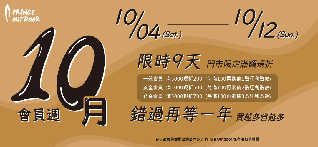 Prince Outdoor 會員卡申請、審核及續卡資格由王子登山戶外用品社(以下簡稱「本公司」)制訂並對外公告,申請人於本公司實體或官網通路(包括但不限於線上平台、手機APP)申辦會員時,請確認並詳讀本文及相關規定,申請人並應提供完整申辦資料,於本公司實體或官網通路完成申辦。申請人開始使用本會員權益時,即視為已閱讀、瞭解並同意以下所有內容。如申請人不具申請、核卡資格或未確實填具完整申辦資料,本公司得拒絕申請。於本公司核發會員後,如發現申請人不具申請、核卡資格或申請人提供之資料與事實不符,本公司有權停止並註銷申請人會員資格及相關權益。