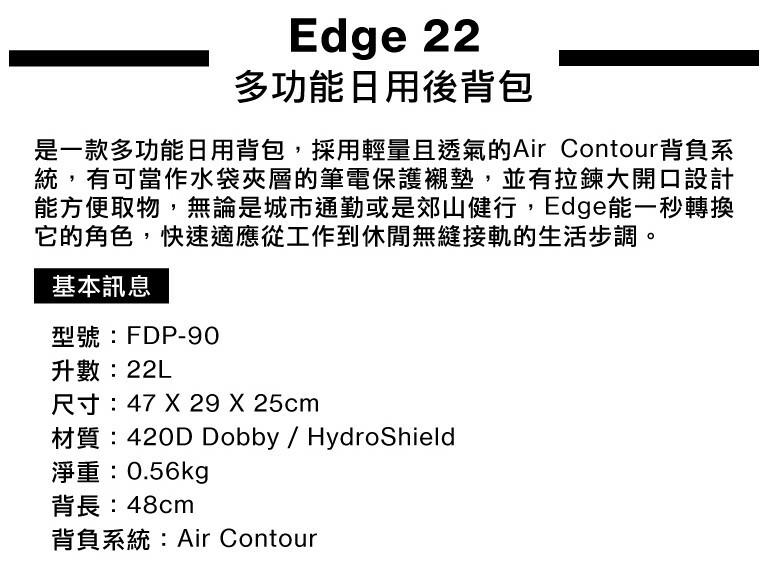 全功能Edge 22天背包足夠容納15英寸筆記本電腦,